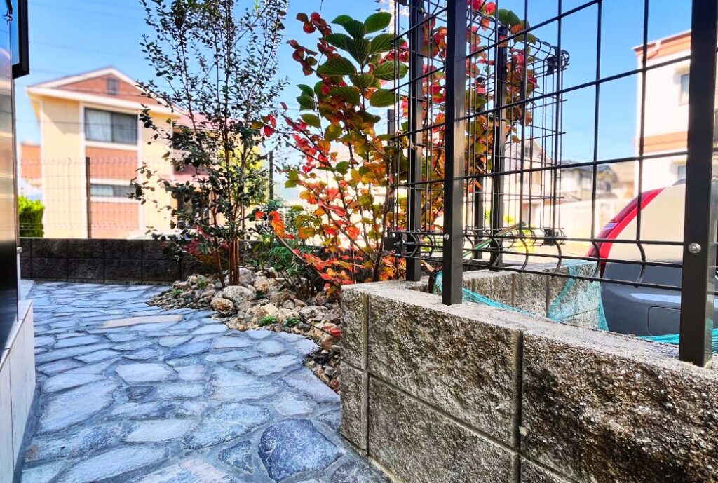 好みの石でアプローチを構えたり、歩きやすい舗装で足下を整えながら、元々植えてある樹木や手入れのしやすい植物をすこしプラスして、目に映る景色や四季折々の緑を楽しんでいただける空間づくりを行いました。